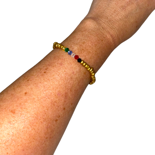 Hand beaded, 18K gold filled or Sterling Silver bracelets in a variety of colors and styles.