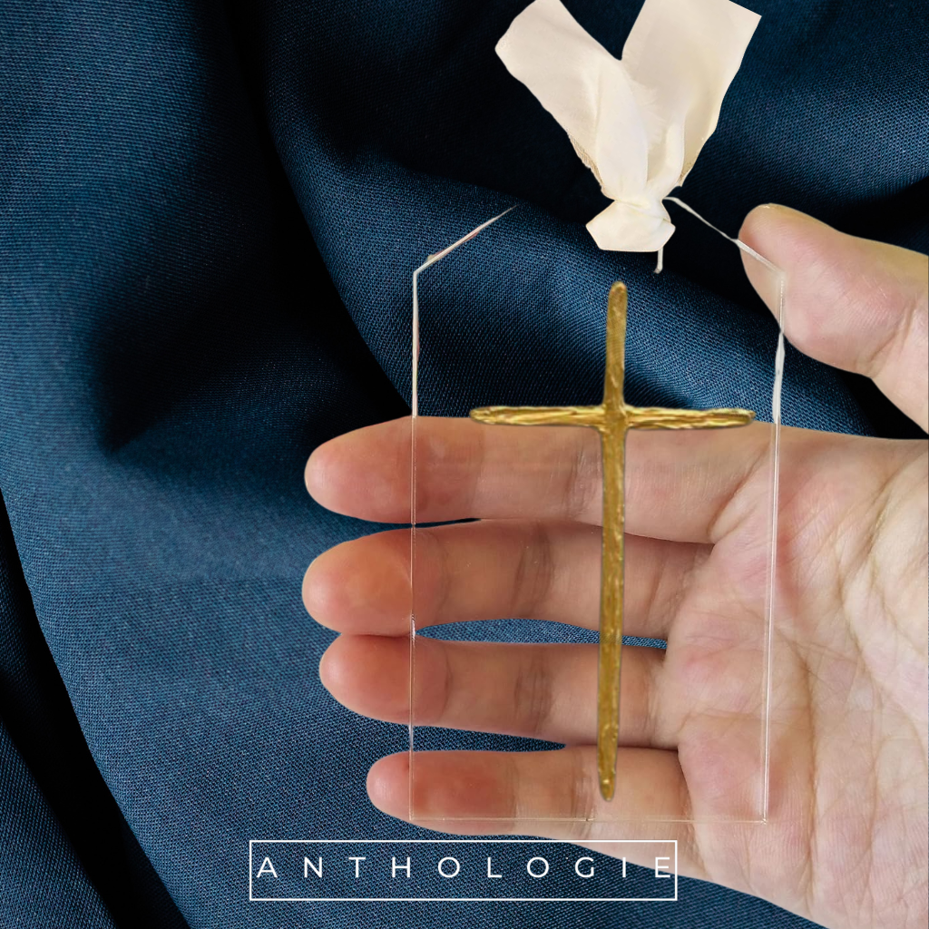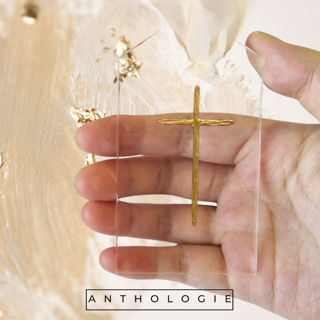 Elevate your gifting experience with our stunning clear acrylic gift tag, adorned with a hand painted 3D gold cross. The intricate textured design exudes luxury and sophistication, making it the ideal choice for adding a touch of elegance to any celebration. With a convenient ribbon for hanging, this versatile accessory doubles as a chic table decor accent or a charming gift topper.