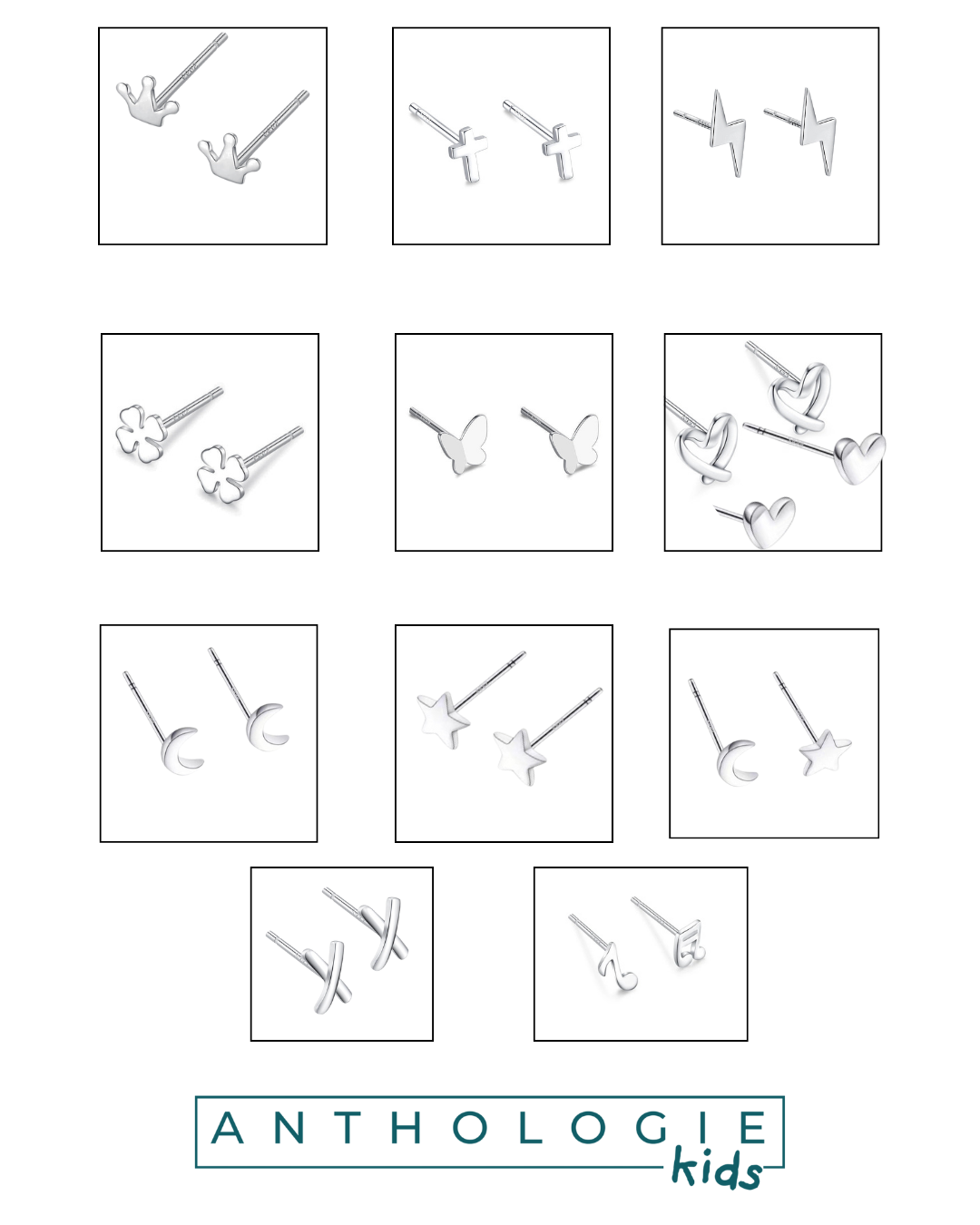 Give the gift of sweet, dainty and feminine style with these sterling silver stud earrings. Made from 925 Sterling Silver, these tiny studs feature a variety of designs, perfect for a little girl's first pair of earrings, or for teens and adults wear them in your second piercing, or layer them for a playful look. Great for birthdays or just because!